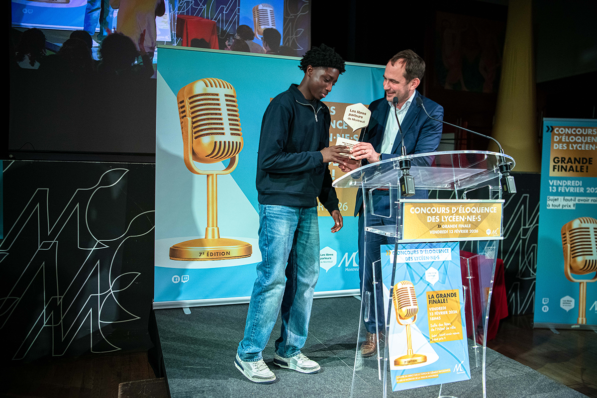 La finale de la 7e saison des Libres-parleurs de Montreuil, le concours d’éloquence des lycéen·n·es de la ville s'est déroulée le vendredi 13 février 2026 à l'Hôtel de ville. C'est Jahmal Diomande (voir son discours), lycéen de 1ère au Lycée Jean Jaurès qui a été désigné lauréat par le jury.