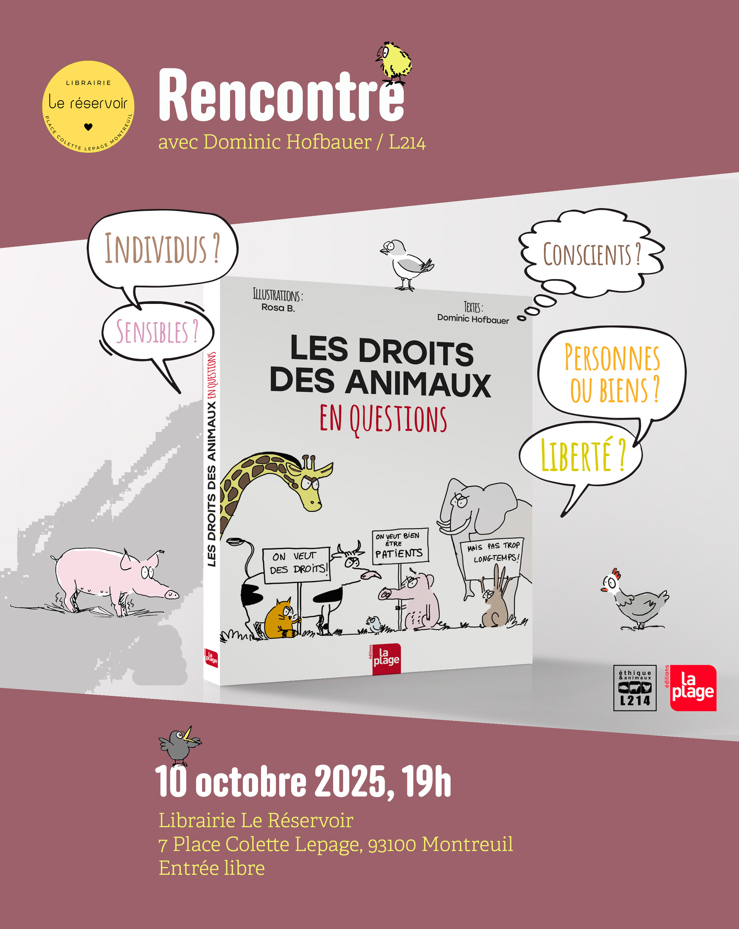 Dominic Hofbauer est éducateur en éthique animale au sein de l'association L214 Education. Il viendra présenter son ouvrage Les droits des animaux en questions le vendredi 10 octobre à 19h à la Librairie Le Réservoir.